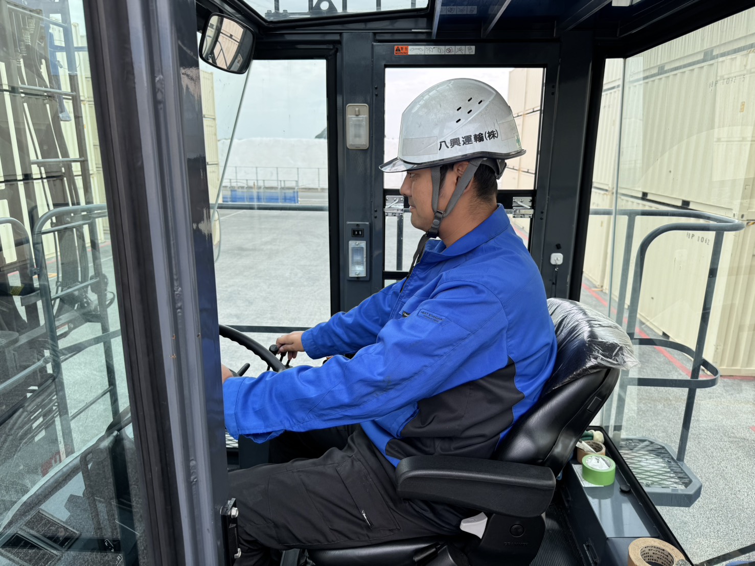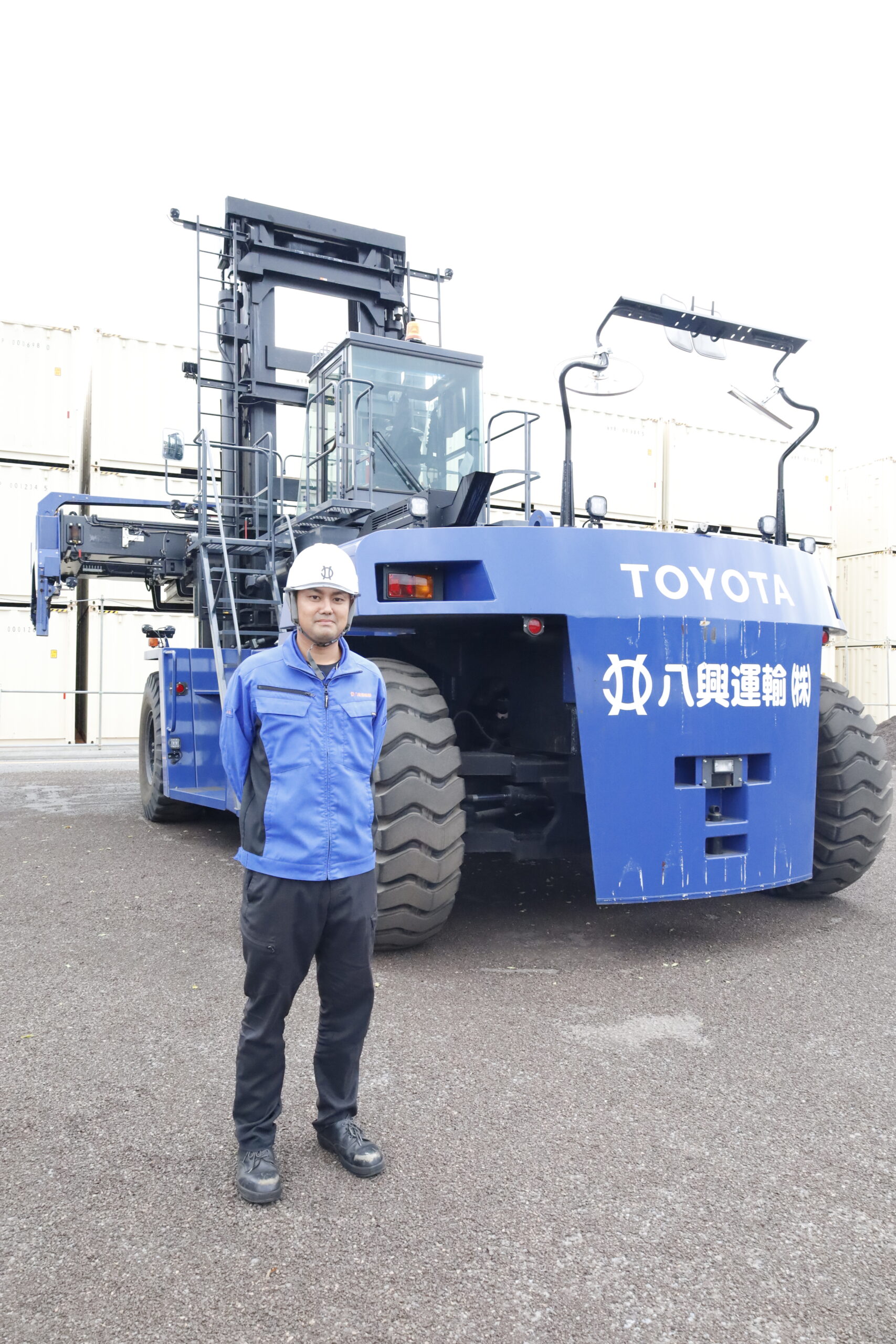 スプレッダー式であるため、最初は操作に慣れるまで時間がかかりましたが、現在では問題なく運用できています。あれほどの大型機をフォークリフト資格で乗務できる点も、導入の大きな理由でした。」